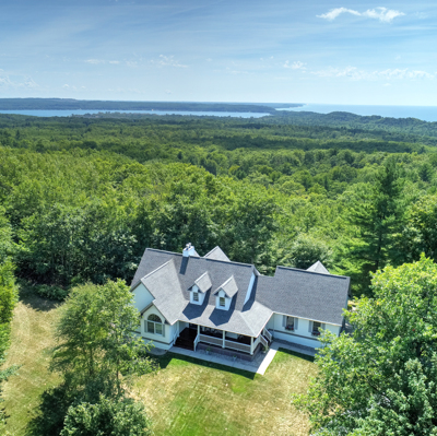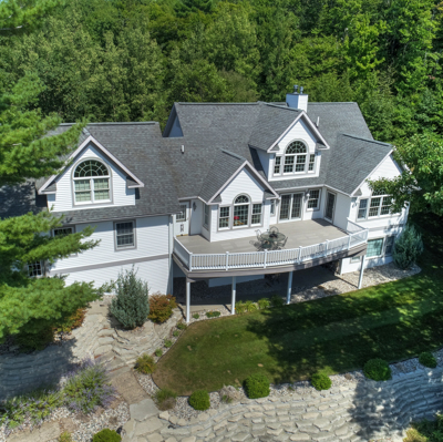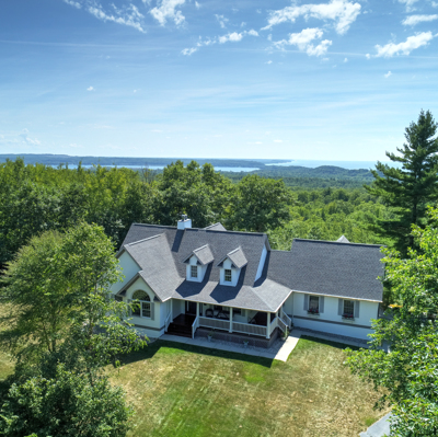 Enjoy panoramic views of Lake Michigan and Portage Lake from your spacious private deck. This 5BR/3.5BA home, nestled above the forest below, boasts over 4000 sq. ft. and has room for the entire extended family. The main level has a well-equipped kitchen, large living room with gas fireplace, master bedroom with private bath, laundry room, mud room, private dining room, two more bedrooms and a full bath. If that is not enough, the walk-out lower level is home to the family room, game room, exercise area, full bath and the 5th bedroom, which would be a great office. Above the garage is the bonus room with a bedroom and half bath. This area would also make a great second home office with views of the lakes. In fact, there are views of the lakes from almost every room in this home. Enjoy the year-round comfort of geo-thermal heating and cooling also! The attached two-car garage and separate large 32x40 pole barn are the perfect places to store all your up-north toys. The pole barn features an 8x10 and a 12x16 entry door. This is the ideal home to start creating your family memories. Enjoy Pure Michigan - close to the Arcadia Bluffs destination golf course, Sleeping Bear Dunes, world-class trout streams, swimming, boating, fishing, canoeing, kayaking, hiking etc. Other area attractions within a short driving distance are Point Betsie, Interlochen Center for the Arts, as well as golfing and skiing at Crystal Mountain. Enjoy shopping and dining in downtown Beulah, Frankfort, Manistee and Traverse City.