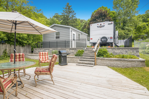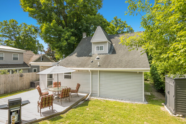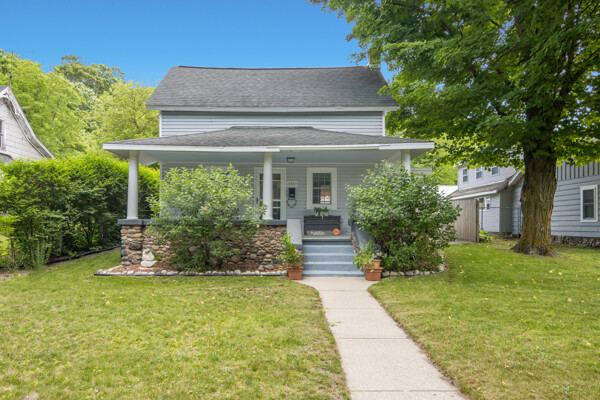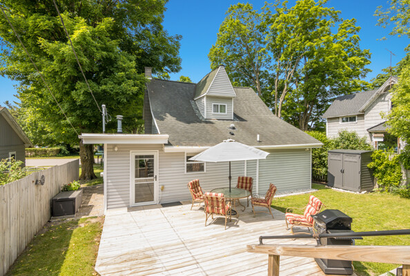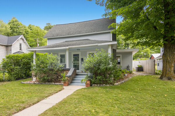 Charming 1910 bungalow in the heart of Honor, a walkable northern Michigan village with local favorites just steps away from a grocery store, coffee shop, restaurants, post office, and more. This beautifully updated home blends vintage character with modern comfort, starting with a welcoming covered front porch featuring original stonework. Inside, you'll find upgraded flooring, solid surface counters, newer appliances, and ample storage with large closets throughout. Everything has been thoughtfully renovated in recent years, making it move-in ready. The backyard offers a peaceful escape with a deck, terraced garden area ready for your personal touch, and plenty of room to relax or entertain. A newer garage and RV parking complete the package. Just minutes from the Platte River and Platte Lakes for endless outdoor recreation. A well-maintained home in a friendly small-town setting!