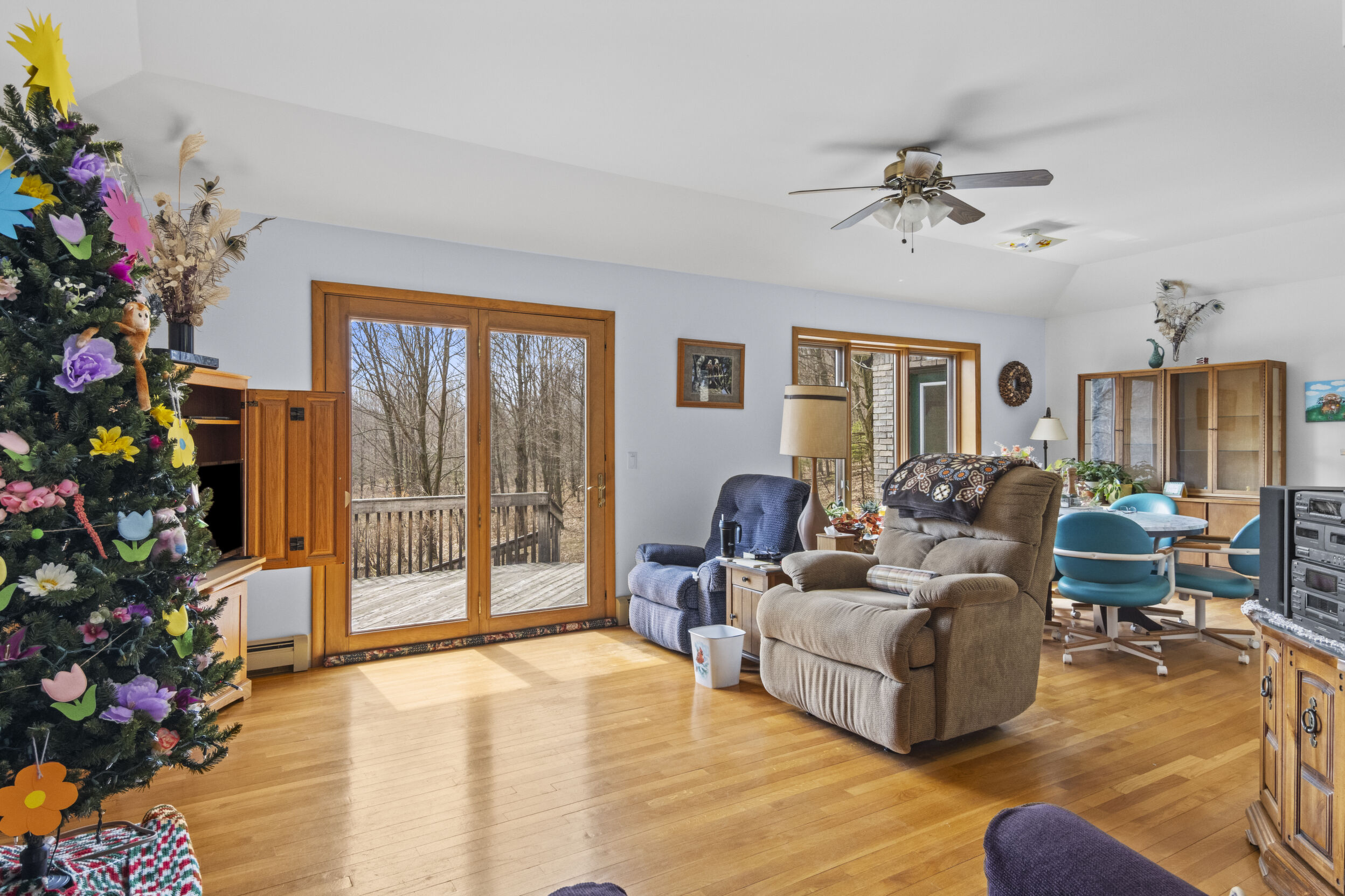 Set on 40 beautifully wooded acres, this property offers the privacy, space, and natural surroundings that outdoor enthusiasts dream about. Whether you're looking for a peaceful Up North retreat or a place to fully embrace Northern Michigan's outdoor lifestyle, this setting delivers. Inside, the home features wood floors and an open concept living area, creating a comfortable and welcoming space to gather and relax. The lower level offers additional unfinished space, providing an opportunity for future expansion such as creating additional bedrooms, a recreation room, or extra living space tailored to your needs. Outside, the possibilities truly shine. A spacious 30 x 40 pole barn provides plenty of room for boats, ATVs, snowmobiles, and all the gear that comes with enjoying all four seasons. An additional small accessory building offers even more potential and could easily be transformed into a workshop, studio, or hobby space. Picture summer evenings gathered around a bonfire, fireflies dancing, and a sky full of stars overhead. In addition, the wooded acreage itself also presents added value. With thoughtful, selective logging, the next owner could generate additional income while maintaining the property's natural beauty. Despite the peaceful setting, youre still close to the best of Benzie County living. Enjoy summer nights at the Cherry Bowl Drive-In Theatre, spend the day boating, fishing, or swimming on Platte and Crystal Lakes, or visit the sandy shores of Lake Michigan's public beaches in Frankfort and Empire. Hundreds of acres of nearby state and national land offer hunting and hiking adventures, and nearby towns like Benzonia, Beulah, Honor, and Frankfort provide access to grocery stores, restaurants, shopping, and local charm. Whether you're searching for a private getaway, an outdoor basecamp, or a property with room to grow, this wooded retreat may just be the place to make your Up North dreams a reality.