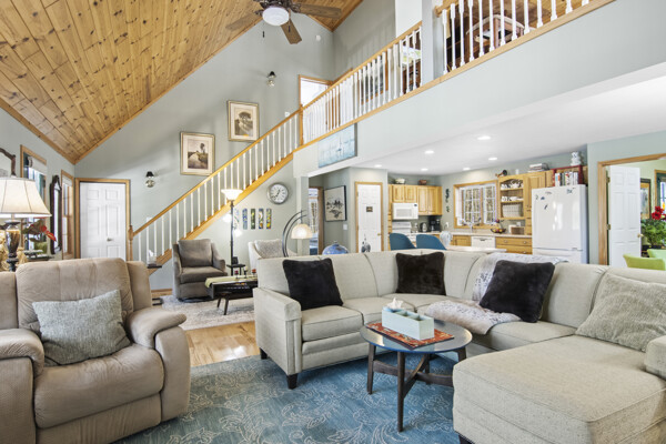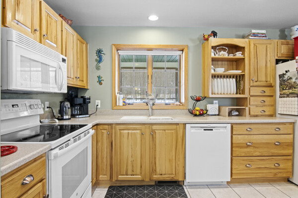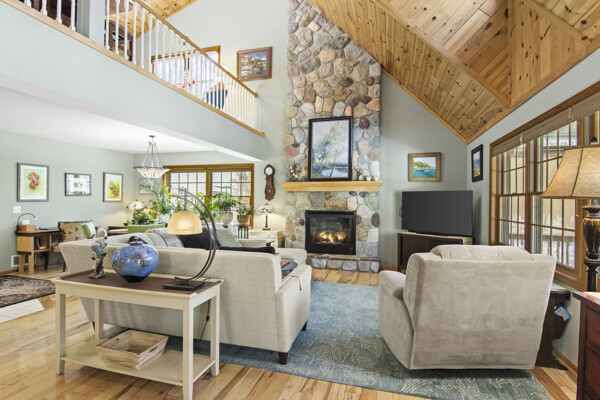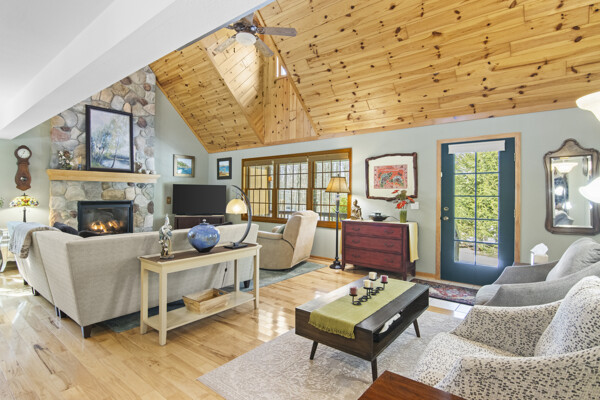 This impeccably maintained home welcomes you with a level of care that rivals new construction, evident in every pristine detail and flawless finish. The custom-designed kitchen, featuring Corian countertops, handcrafted cabinetry, and pristine hickory hardwood flooring that flows seamlessly throughout the living areas, reflects the meticulous upkeep found throughout. The cathedral-style ceilings finishing in knotty pine are truly magnificent. Not to be outdone by the floor-to-ceiling stone fireplace creating an inviting atmosphere for cozy evenings by the fire. Step outside to discover the newly constructed oriental garden, a stunning recent addition enclosed by a tall, ultra privacy-ensuring cedar fence, bringing a serene elegance to the beautifully landscaped yard where every shrub and flowerbed has been tended with precision. Unwind on either of the TWO quiet covered porches, both meticulously maintained to offer a perfect perch for soaking in the tranquil wooded surroundings and spotting local wildlife. A small fenced area, thoughtfully designed for pets, remains in top-notch shape, while the expansive unfinished basement clean, dry, and brimming with potential awaits your vision for additional living space, a home gym, or a recreation room. A rare find and defining feature of this home is its exceptional proximity to Torch Lake just a short, leisurely stroll to two public access points. This unique advantage places you steps away from one of the country's most breathtaking lakes, offering effortless opportunities for kayaking, paddle boarding, boating, fishing, or simply basking in the sun. The surrounding quaint small towns, boutique shops, and farm-to-table dining enhance the charm of this Northern Michigan retreat, creating a peaceful escape from the everyday grind. If you're dreaming of a private sanctuary that blends the serenity of the woods with unparalleled access to Torch Lakes' pristine shores, this home and location are NOW available.