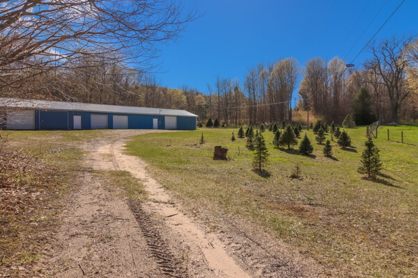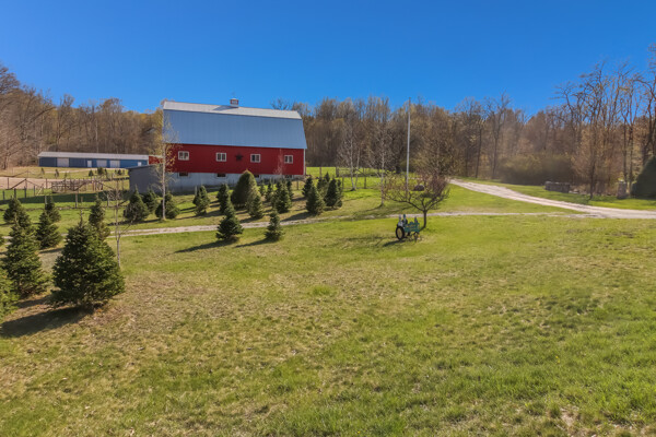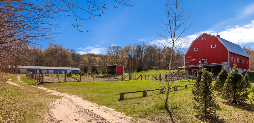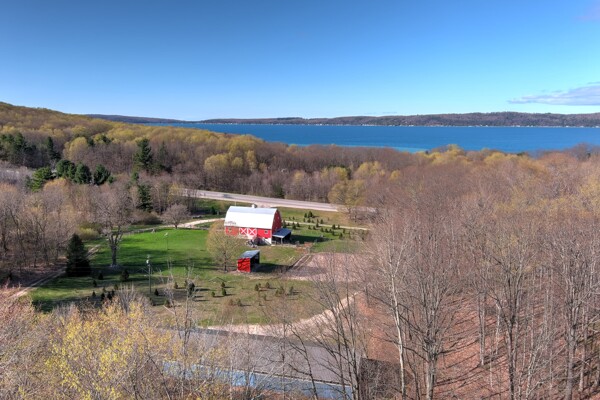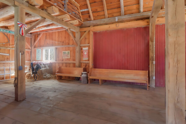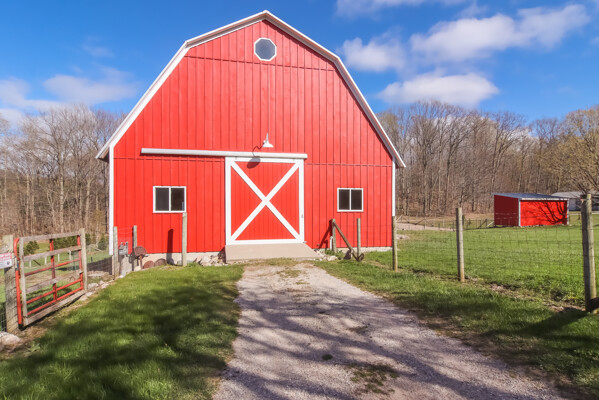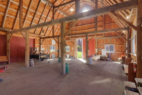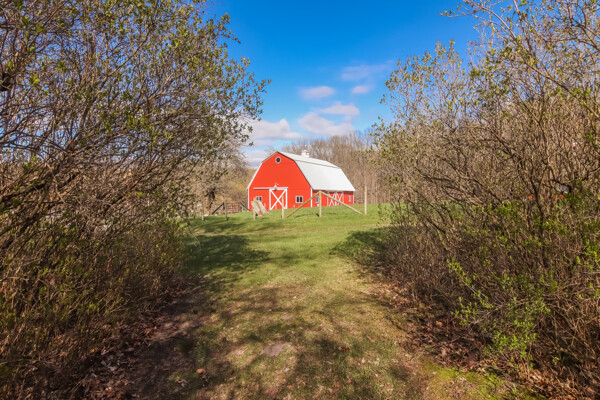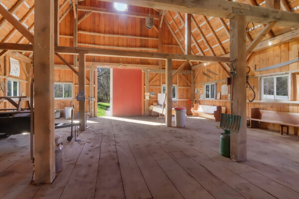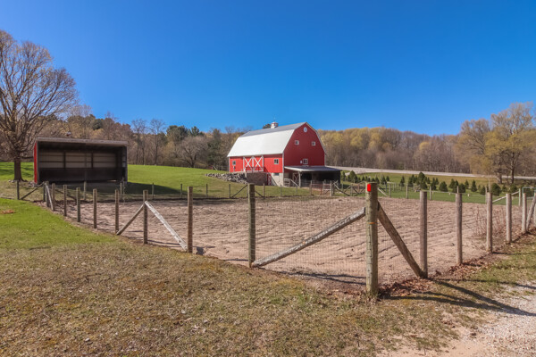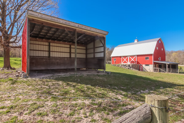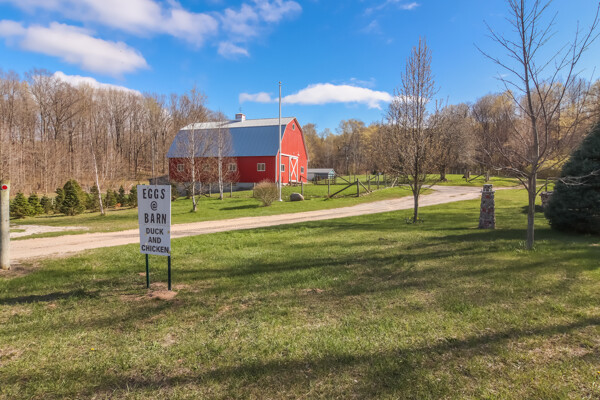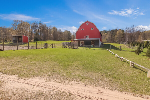 You may have driven by this red barn for many years and maybe even purchased fresh farm eggs here; well, now is the time for you to be the proud new owner! This 36 x 56 authentic post-and-beam barn reminds us of an era we should never forget. The barn on the family farm was the foundation and symbol of strength and determination of this great country. The American barn's re-birth is here nestled on fifteen rolling wooded acres outside of Frankfort in beautiful Benzie County. As you enter the main floor, the hand-hewn logs, large post and beam frame will leave you in awe. Black Locust trees from the property were milled to create the pins used in the barn's construction - also, timbers from the property were hewn to form the floor joists. There is even a loft overlooking the main floor from above. The barn's lower-level features radiant in-floor heat, four stalls, a chicken coop, an office, a restroom, a mechanical room, and a feed storage area. The property also features a 32 x 120 pole barn that is perfect for all your storage needs. As they roam this land, your animals will enjoy a fenced-in paddock and large run-in shelter. If you love a countryside setting and appreciate quality construction, you'll want to see this lovingly maintained barn. Zoned Rural Preservation, there are many options available within the Zoning Regulations. Please visit for more details. A MUST-SEE YouTube video of the making of this barn To view stunning drone videos, visit 3396caseyrd.com.