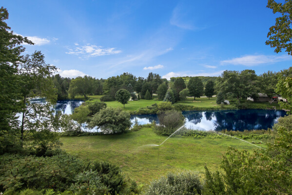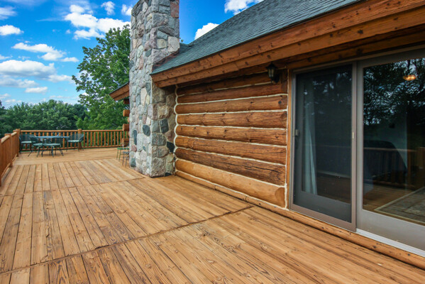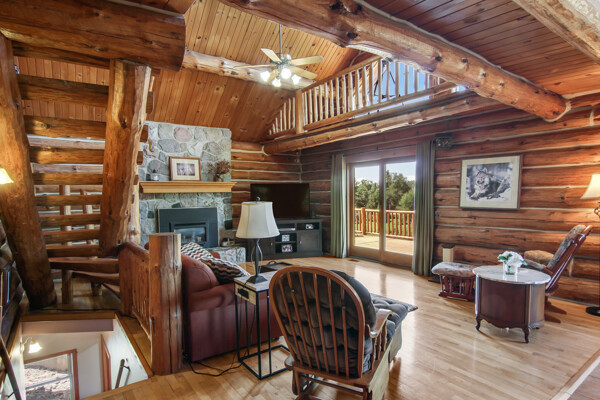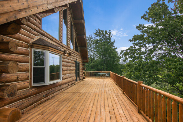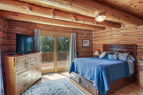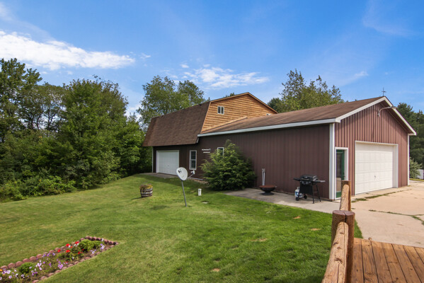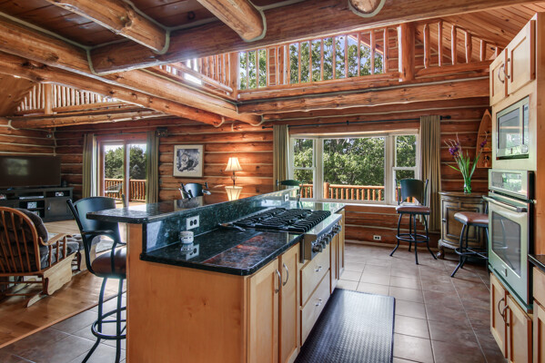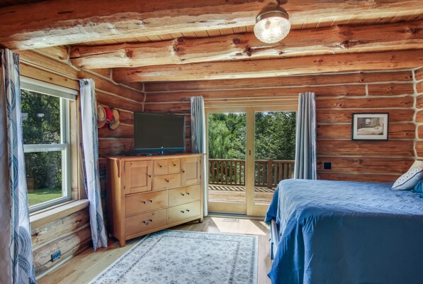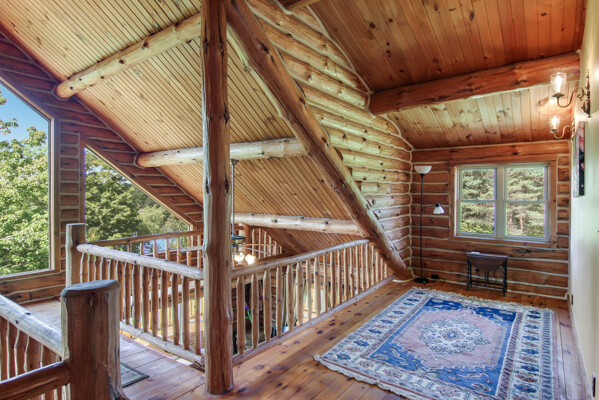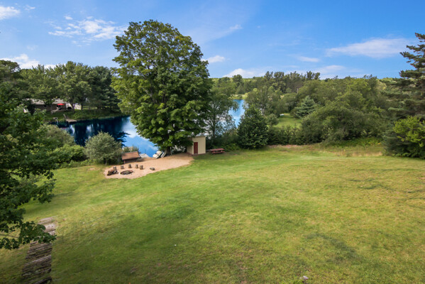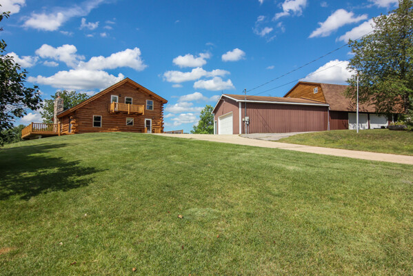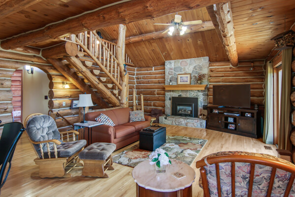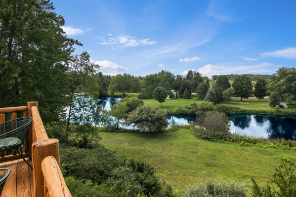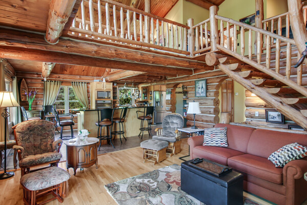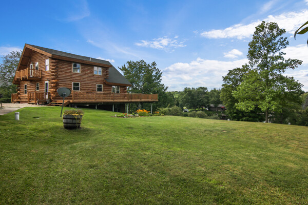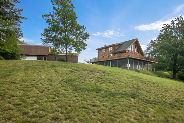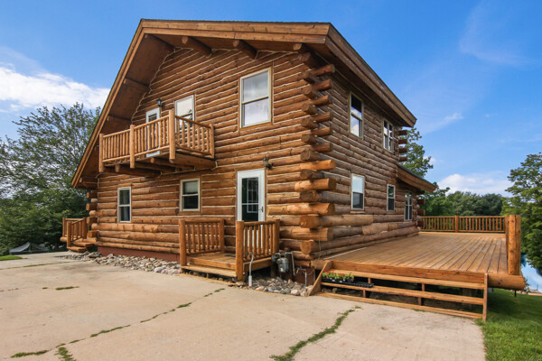 Beautiful custom full log home, Amish built, year round home. Awesome views, 300 Feet of Boardman River Waterfront, 3 Bedrooms, 3 Baths. Open floor plan, very nice kitchen with Granite countertops, stainless appliances, Maple Cabinets, Tile flooring. Great room with Maple floors a huge gas Stone Fireplace. Upper level with a bedroom, bath and a large loft area and pine floors. Lower level walkout with full living quarters includes full kitchen, bedroom, bath, living room, stone fireplace, and views of the River, walkout to patio. 1.44 acres, Nice trees and irrigated lawn, 300 Feet of waterfront, enjoy Fishing, Kayaking, Paddle Boating and Boarding, Canoeing. 1792 Sq.Ft Garage/outbuilding, with electrical, heat, extra overhead doors for drive through access. Upper level is partially finished with Drywall, Electrical, with access to heat. Great sunset views from the wrap around deck overlooking the River.1500 Sq. Ft. of decking. Located on a quite private Cul-De-Sac. Move in Ready! A must see, won't last long! Virtual Tour Available.