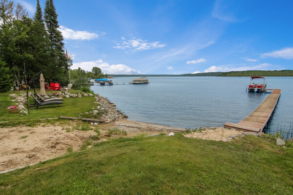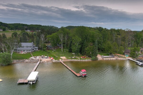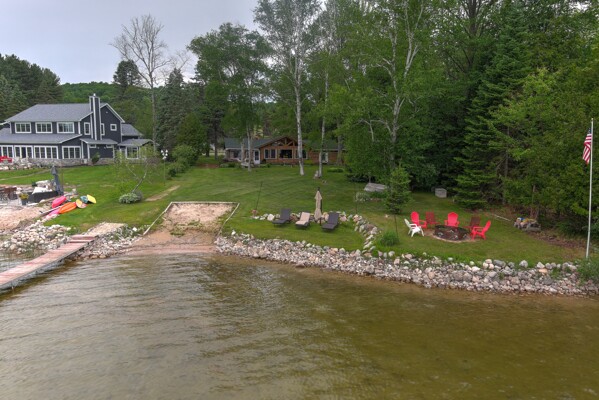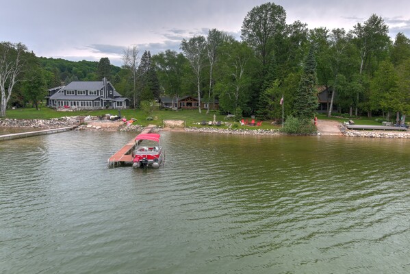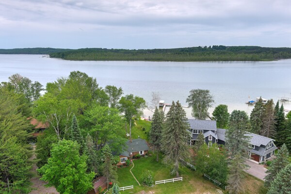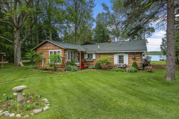 Your wait for a cottage on Lake Bellaire is over! This quintessential lakefront log cottage enjoys 115' sandy frontage, an acre of land, wonderful views, & an inviting Up North feel. A premiere location, on a desirable, & rarely available, quiet private road. You'll be welcomed by a charming kitchen, the epitome of a cottage. It offers plenty of cabinet space, a large island & wood floors. As you step into the large living room, you can appreciate the vaulted ceilings, exposed logs, natural stone fireplace with wood insert & wall of windows that provides uninterrupted lake views. In the cottage are 3 bedrooms & 2 baths. The oversized garage adds a 1/2 bath & unfinished bunk room above. The primary bedroom has access to the 3 season porch, & is separated from the other bedrooms. A 3/4 bath is by the kitchen. The 2nd bath, with jetted tub, is between the guest bedrooms on the opposite side of the living room. The room is accessed from the guest bath or outside. It houses the laundry & mechanicals. Your favorite spots to relax, other than at the shore, will be the lakeside deck or the 3 season porch. Enjoy the views, play games, or just relax out of the elements. For activities, why not enjoy the shuffleboard court or tetherball in the front yard? Wouldn't it be fun to take up games from a simpler time? You may also want to tell stories by the shore side firepit, or explore Lake Bellaire, to watch for turtles in the reeds near the mouth of the Intermediate River, fish the many fishing spots, watch the loons nest in the North Arm, or seek out the sunken truck in the South Arm of the lake. For a day trip, you can also explore the lower chain of lakes, all the way to Elk Rapids. This is a rare opportunity!