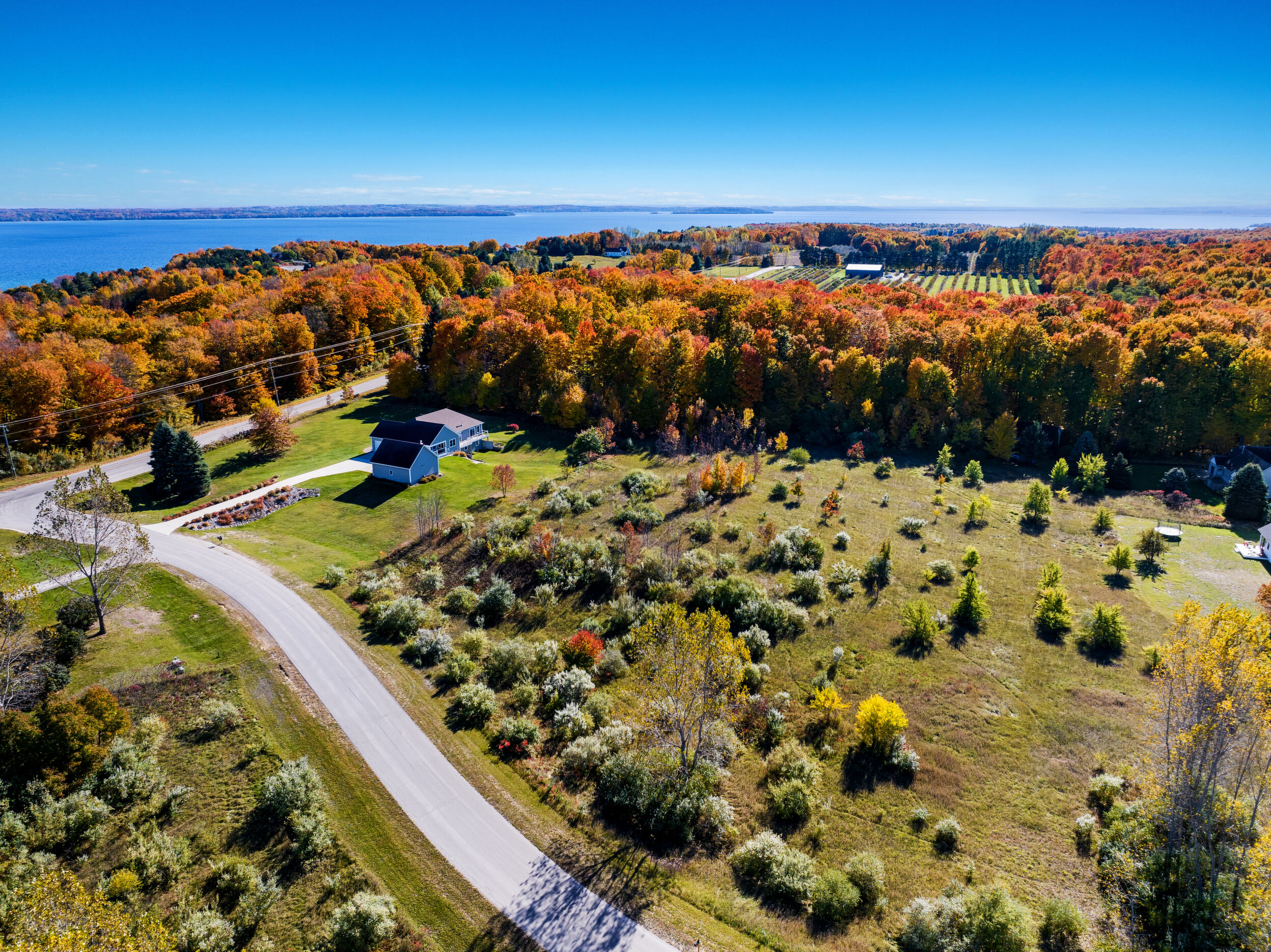 Stony Point Peninsula, 29 estate-sized lots. Private well already drilled. Nestled in a quiet scenic setting with underground utilities and the convenience of being just a short bike ride to the village of Suttons Bay for fine dining, shopping and everyday essentials. Build your dream home in one of the area's most desirable locations where open space meets small town charm.