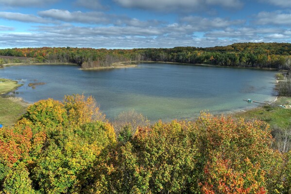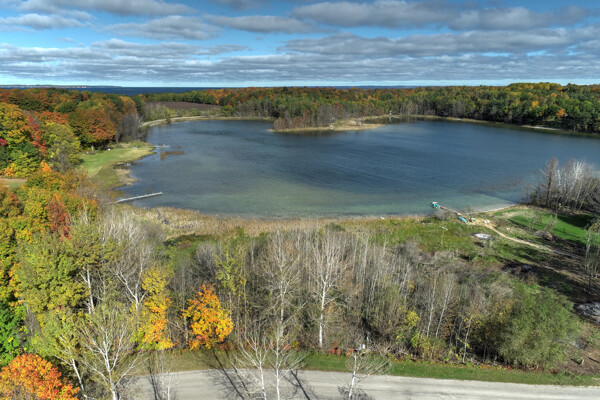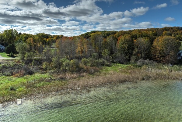 Omena Shores is a lovely little neighborhood on a private fishing lake within walking distance to Omena Bay. This 1-acre corner parcel has 164 ft of frontage on Mougey's Lake, known for passive recreation and pan fishing. The land slopes to the water from the road. A perk test for a conventional septic system is attached. The location is ideal. Walk to the post office and the beach on Omena Bay; dine and sip local wine with a bay view; purchase the necessities at the country store, and visit the local museum and art gallery. Omena is a fine, friendly community for year-round enjoyment.
