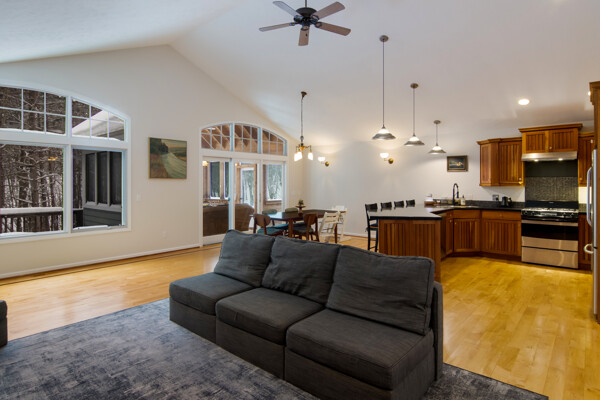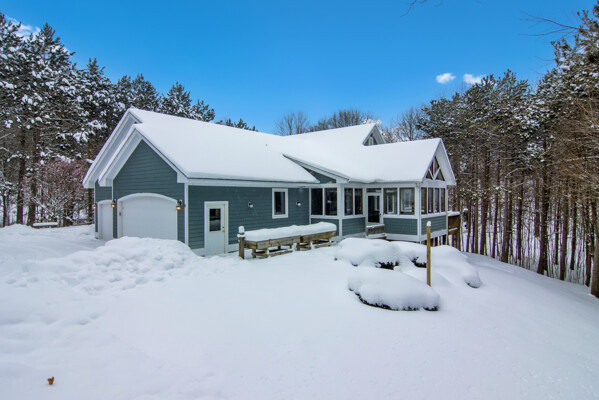 Peacefully tucked away in a private cul-de-sac, surrounded by the picturesque setting of nature, awaits your new place to call home. Upon entering this home, the open concept, cathedral ceilings and graciously sized windows will greet you with a warm, and inviting feeling filled with natural light. The master suite is a true retreat, featuring a beautifully tiled stand-up shower, an oversized soaking tub, and not one, but two walk-in closets. Imagine starting your day in this luxurious haven. One of the highlights of this home is the amazing three seasons porch, complete with vaulted tongue and groove cedar paneled ceiling and built-in gas grill. This versatile space will quickly become your favorite spot to unwind after a long week or to entertain friends in a relaxing setting surrounded by nature. You'll have room for all your vehicles and more with the oversized, three-car attached heated garage, which also includes a workspace area with cabinets for all hobby project needs. The lower level walk-out boasts a small mother-in-law suite kitchen and family room area offering flexibility for multi-generational living or a nice area for guests visiting to have their own space. Laundry chores will be a breeze in the generously sized laundry room, featuring ample cabinet and counter space, as well as a convenient wash tub.Working from home has never been easier with an office area located on the main level, providing privacy and functionality. Situated in the heart of Leelanau's wine country, this home is an ideal location for wine enthusiasts and nature lovers alike. Just 15 minutes from Traverse City and only 5 minutes from downtown Suttons Bay, you'll have easy access to shopping, dining, and entertainment options. Outdoor fanatics will appreciate the proximity to West Bay and Lake Leelanau public boat launches, perfect for water activities, and the nearby TART trail right off of Shady Lane, ideal for hiking, biking, and exploring the picturesque surroundings.